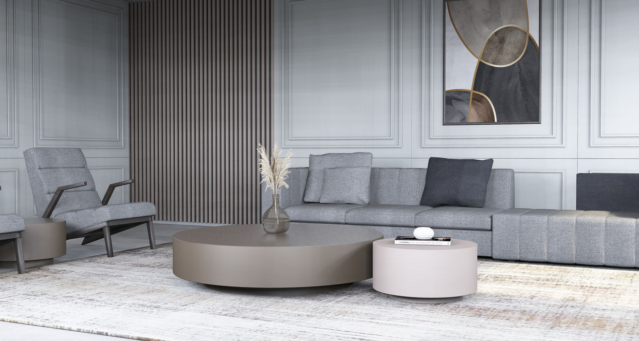 A design that is heavily focused on form and free of ornaments, Denver is a collection of cylindrical tables of different diameters, all sharing the same height. As is often said, that which appears simple is often the most complex to achieve.