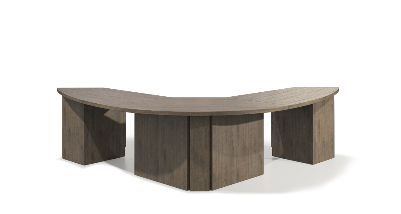 A large work desk resembling the outstretched wings of a bird in flight, creating the impression of leadership and valour for whoever sits behind it. The table is made primarily with composite wooden boards, fully equipped with drawers and cabinets which can be finished in laminate or veneer.